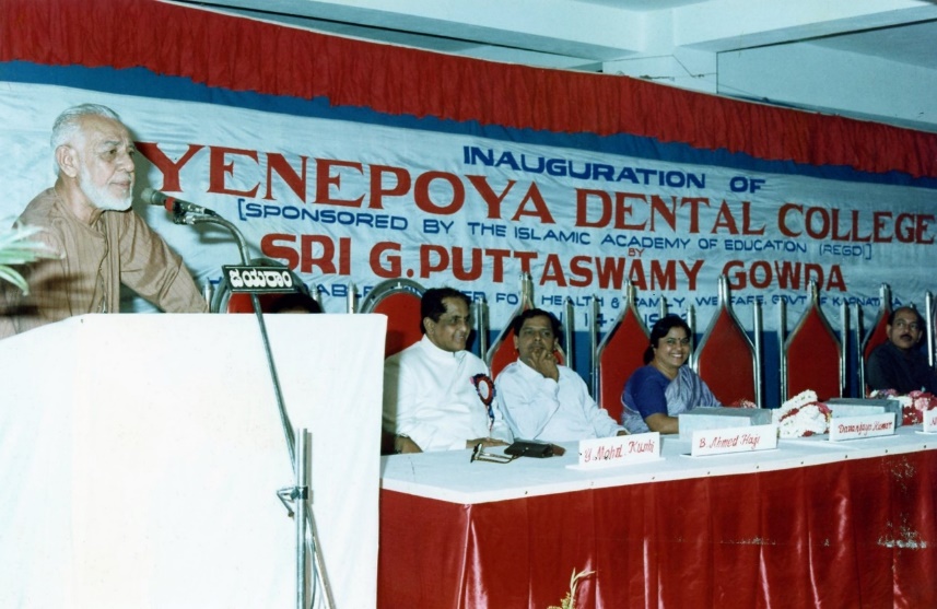 Inauguration of Yenepoya Dental College 14th August 1992 at Bibi Alabi Rd. by Sri G Puttaswamy Gowda.