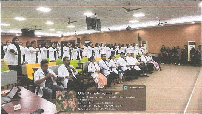 White Coat Ceremony was organized by Yenepoya Dental College on 11.11.2025 to formally welcome the third year students into the clinical phase of the dental profession. The event was presided over by the Principal, Dr. Laxmikanth Chatra, while the Vice Principal Dr Hasan Sarfaraz extended a warm welcome to the gathering.